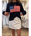 A fresh take on a patriotic classic, this cream knit sweater features a bold American flag graphic and a flattering V-neckline. Perfect for summer celebrations or adding a hint of Americana to your everyday look.