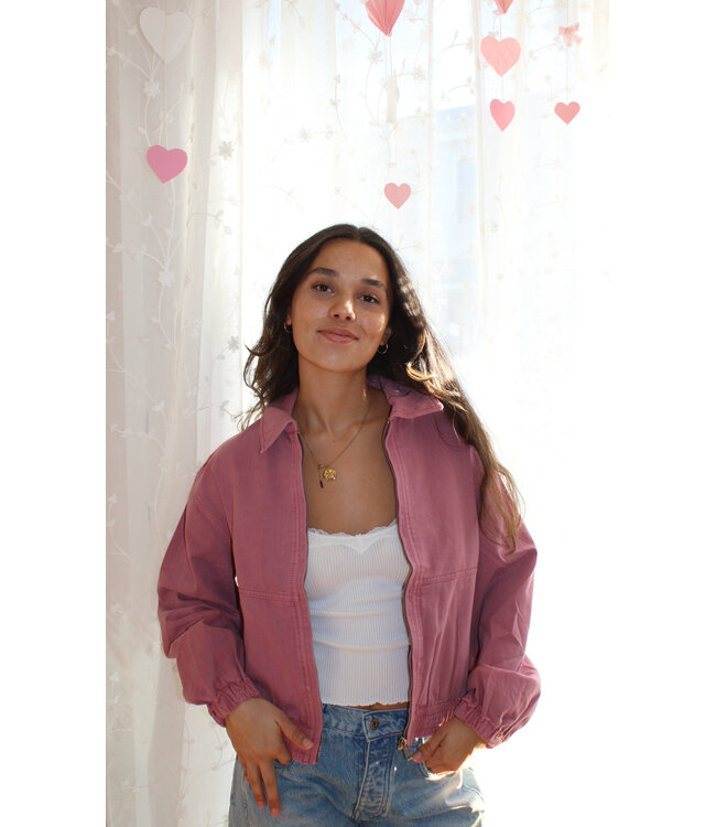 So essential for any-season layering, this cotton twill jacket from We The Free is featured in the perfect bomber-inspired style with a zip-front closure for an effortless addition to any outfit.