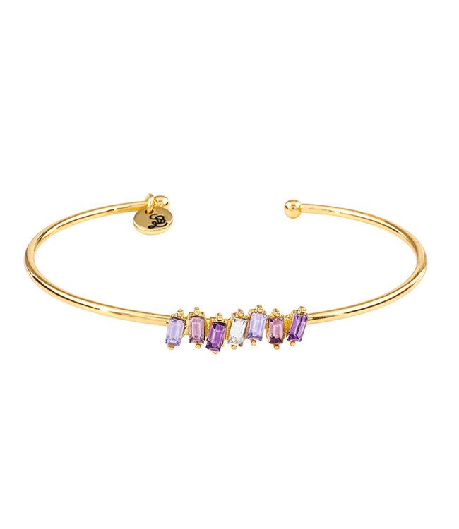 Add sparkle to any outfit with our Crystal Bangle Bracelet. Featuring a polished gold band adorned with vibrant, multi-colored crystals, this dazzling piece blends elegance and playful charm effortlessly.