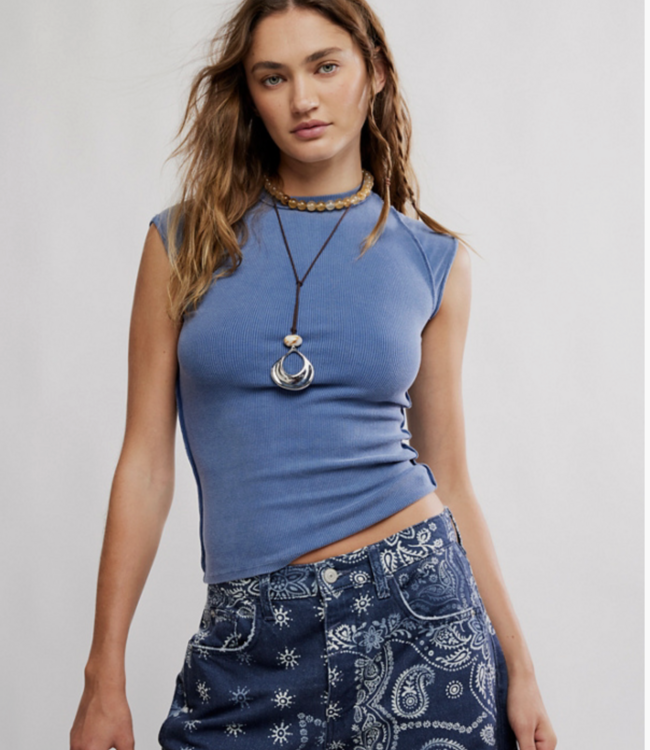 A soft, ribbed knit fabrication and slim-fitting silhouette with raised seam detailing and cap-inspired sleeves. Simple yet essential, this tee pairs perfectly with everything.