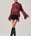 This semi-sheer, ruffled blouse works for business casual settings, parties, and more. Read more.