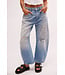 So bold barrel jeans from our Free People collection featured in a mid-rise fit with subtle distressed detailing and wide-legs that taper at the ankle.