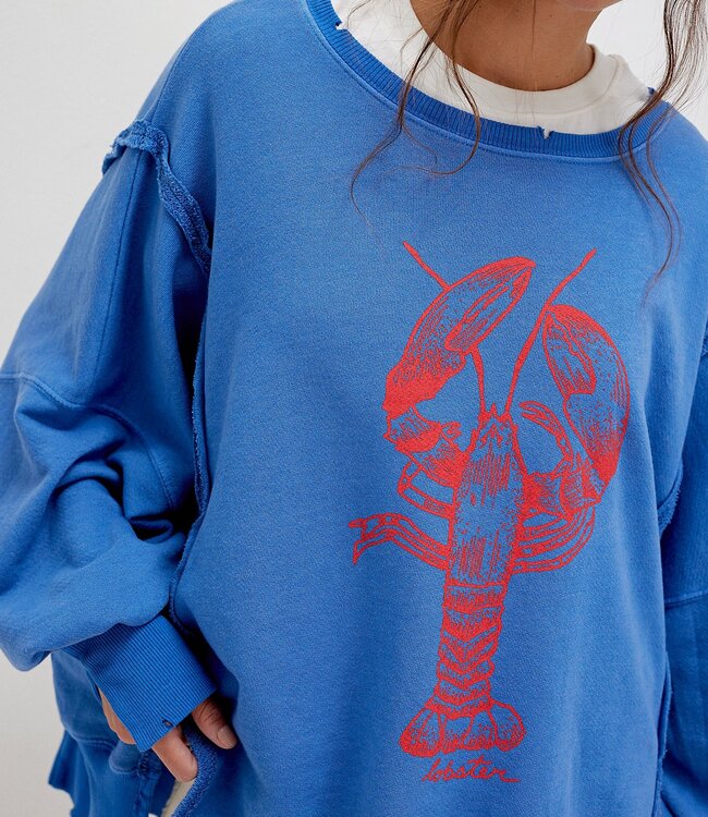 Playful and cozy, this slouchy pullover features a bold lobster graphic and a relaxed fit—perfect for layering or lounging with a touch of quirky charm.