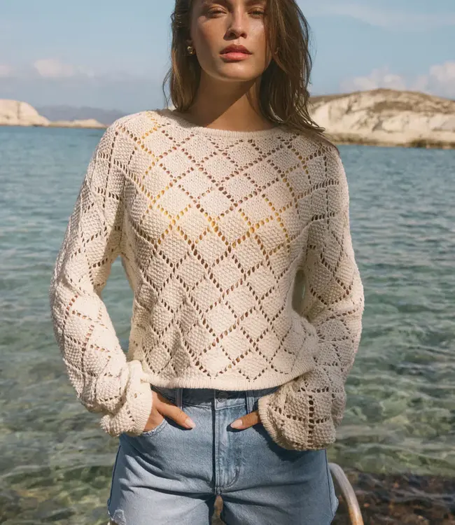 Made of 100% cotton yarns, this long sleeve top features a diamond crochet pattern. It’s the perfect way to instantly refine any jeans and top look. Try it with your favorite denim or linen pants.