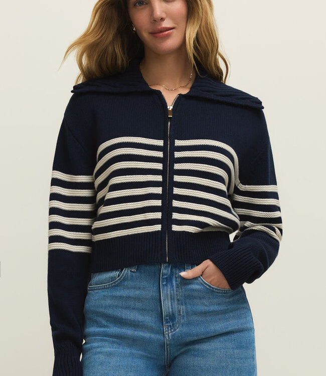 Made with our signature Sienna Yarn fabric, this 100% cotton sweater is perfect for all seasons. The stripe and large collar detail elevate this cozy top making it easy to dress up or down. Pair with light denim or even your favorite trousers.