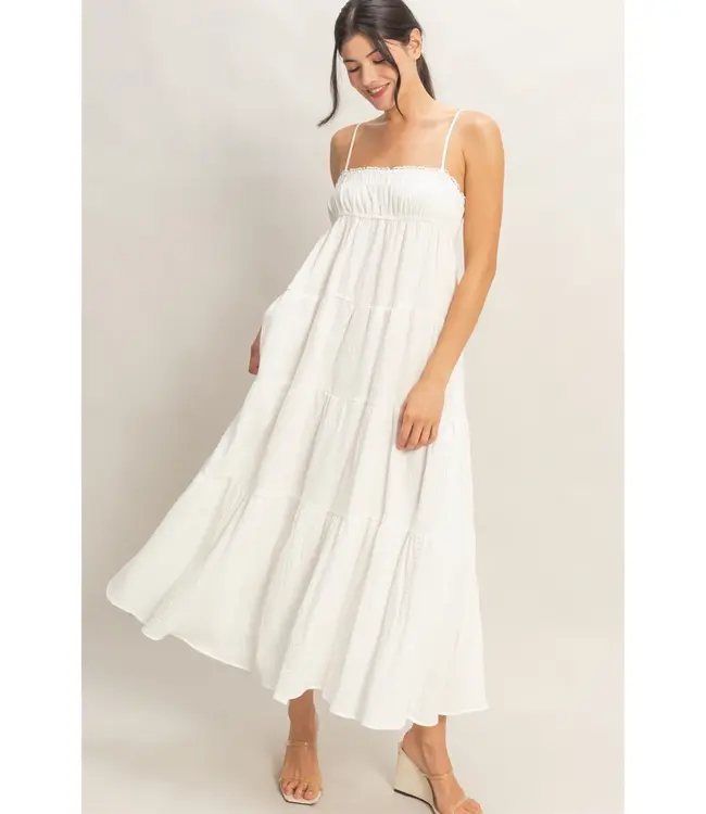 The Lovely Girl Maxi Dress is an easy, breezy staple with a soft, feminine feel. Featuring a smocked bodice and flowy tiered skirt, it’s designed for comfort while still looking effortlessly put together. Perfect for warm days, beach outings, or casual summer plans.