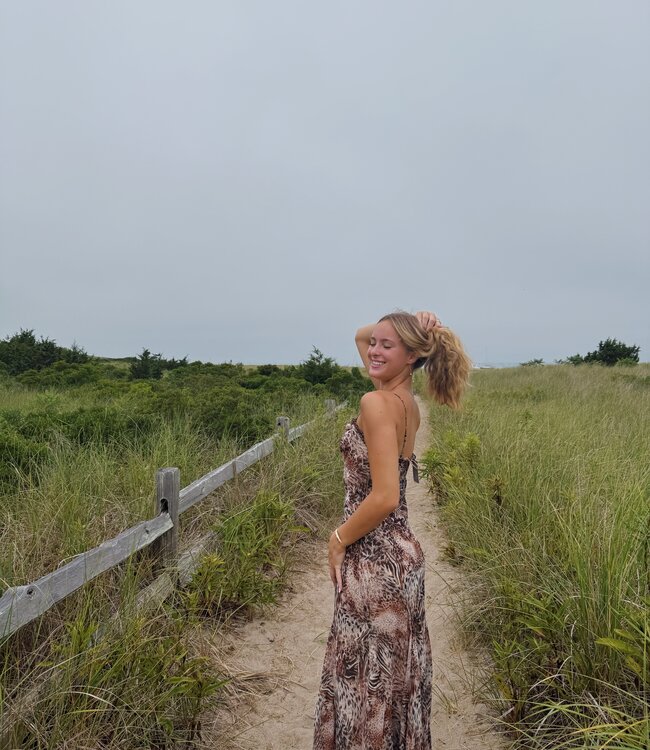 The Maeryn Dress by ASTR the Label brings fierce femininity with its leopard print, curve-skimming silhouette, and romantic details—made for standout moments.