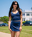 The Newport Tennis Set features a sporty-chic cropped tank and matching mini skirt in a bold navy with crisp white trim. Designed to move with you, this set hugs in all the right places while keeping you cool and confident. Whether you're rallying with friends or just brunching by the beach, this look scores every time.