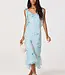 Cascading ruffles and adjustable shoulder ties give this floral midi dress romantic movement. The scoop neckline and tiered hem create an effortlessly feminine silhouette that's perfect for warm-weather occasions.