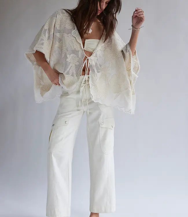 A fresh twist on a classic, these high-rise, slim-fit cargo pants feature a soft cotton feel, utility pockets, drawstring waist, and slight flare—perfect dressed up with heels or down with sandals.