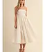 This charming strapless midi dress is a perfect blend of playful and sophisticated. Crafted from a light, airy fabric, it features a delicate polka dot pattern that adds a touch of vintage charm