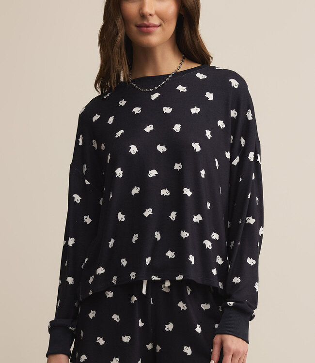 Lightweight and buttery-soft, this ghost-print pullover brings the love. The relaxed fit and classic crew neckline make it sweet, simple, and seriously comfy.