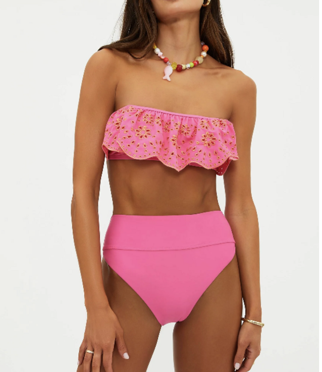 Pair the Tanvi Top with the matching high-waisted bottoms for a chic, feminine set, or mix it with a contrast print for a playful, curated beach look. Read more.