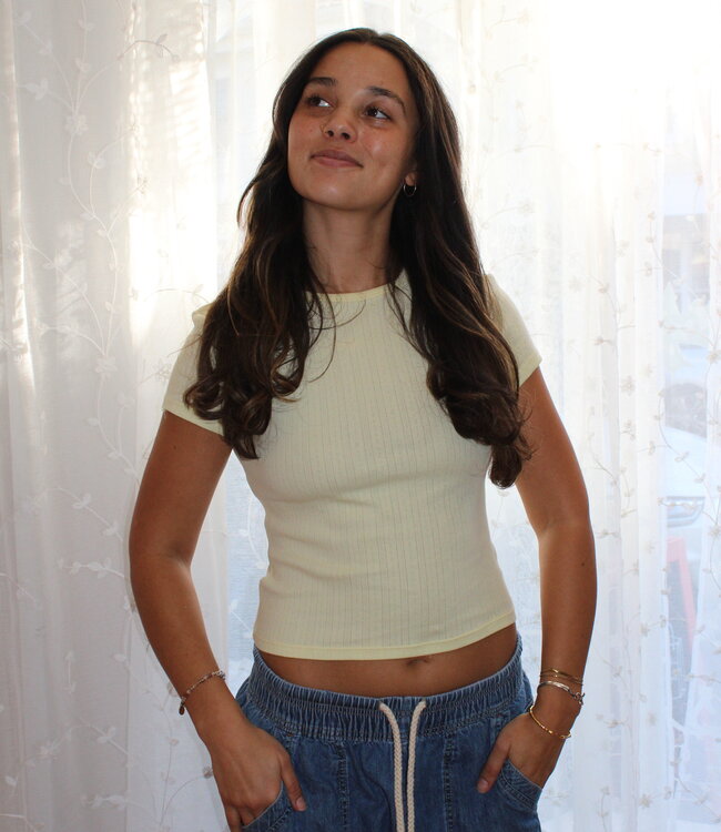 A classic cropped baby tee designed with soft ribbed fabric for the perfect mix of comfort and style. Easy to dress up, pair with denim, or simply lounge in—it’s a go-to for every occasion.